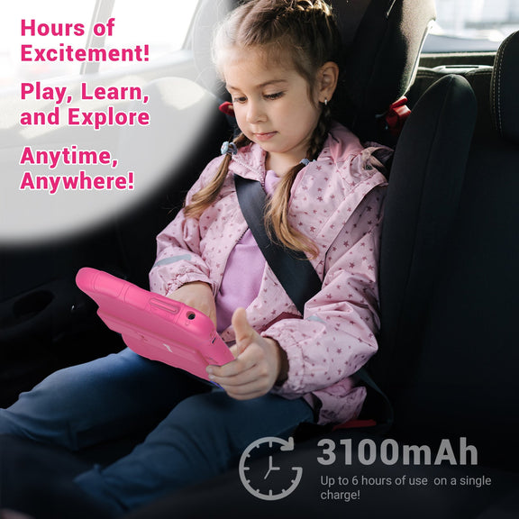 Bright, kid-friendly 1024 × 600 resolution screen designed for small hands -
