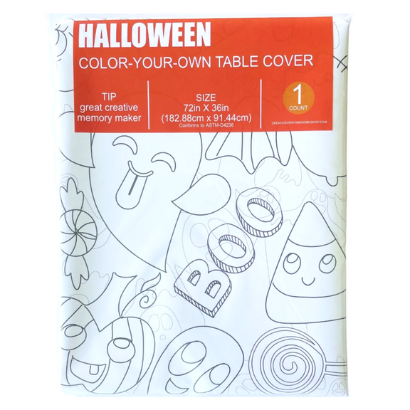 Get your Boo Crew ready for creative Halloween fun with this giant color-in tablecloth! Available in three spooky-cute designs—Halloween, Monster Mash, and Halloween Town—each oversized 36" x 72" sheet gives kids hours (and hours!) of festive coloring time.