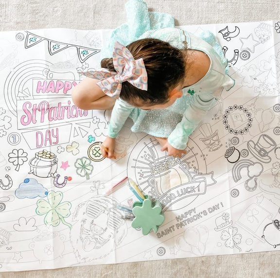 Get ready for a magically fun St. Patrick’s Day with this giant, color-in tablecloth—perfect for luring a mischievous little leprechaun or keeping your own kiddos happily entertained! This jumbo coloring collage can be used as a poster or a full table cover, turning any space into a festive creative zone.